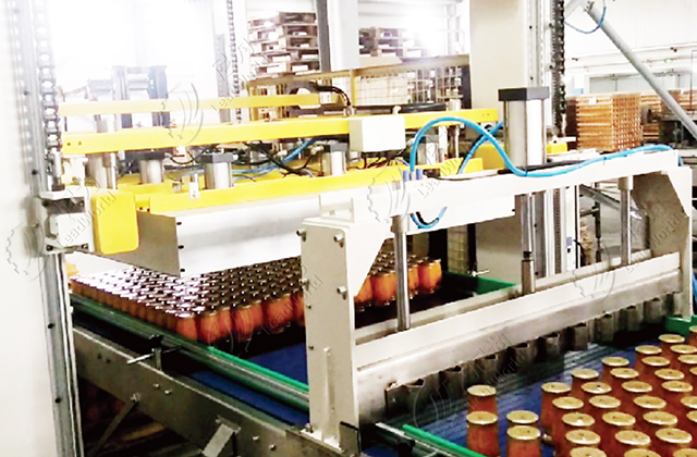 桔片罐頭生產線通用設備:空瓶卸垛機、玻璃瓶洗瓶機、化糖鍋、漂燙機、玻璃瓶封口機、殺菌機、實罐碼垛機、后道包裝生產線等。