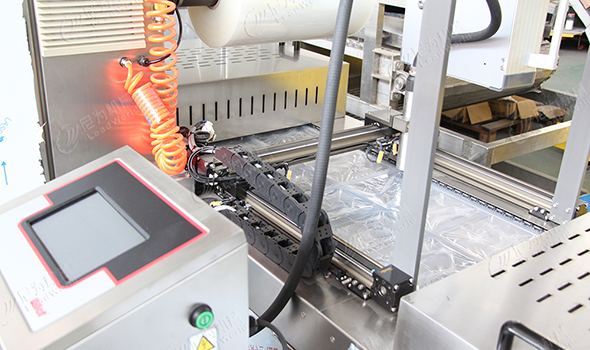 客戶來工廠驗貨,對冷凍茄子拉伸膜真空包裝機的外觀、材質、以及真空包裝機試機作業的工作效率表示滿意,且設備邊角配有廢料回收系統,有利于環保。