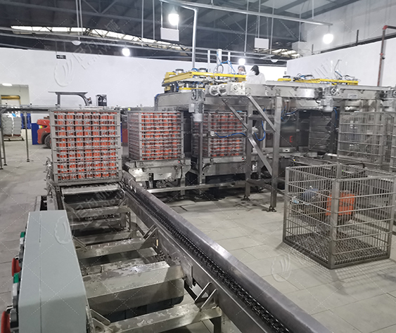 客戶的產品是馬口鐵罐紅燒肉罐頭,根據客戶的廠房面積、物料、包材特點及產量,我們為客戶提供紅燒肉罐頭生產線設備(磁力空罐卸垛、空罐洗罐、輸送、提升、實罐清洗、裝卸籠、吹干、碼垛等設備),投產期間使用良好,后期客戶又和我司簽訂了午餐肉罐頭生產線設備合作。