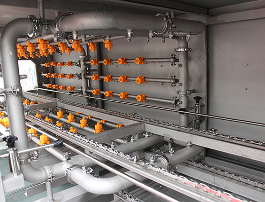 高清高壓清洗,噴嘴采用食品級(jí)耐高溫塑料或不銹鋼制作,清洗角度可調(diào)。噴頭扇面設(shè)計(jì),不易堵塞,可選配風(fēng)干機(jī)或烘干機(jī) ,防止水垢滋生,便于后續(xù)快速利用。
