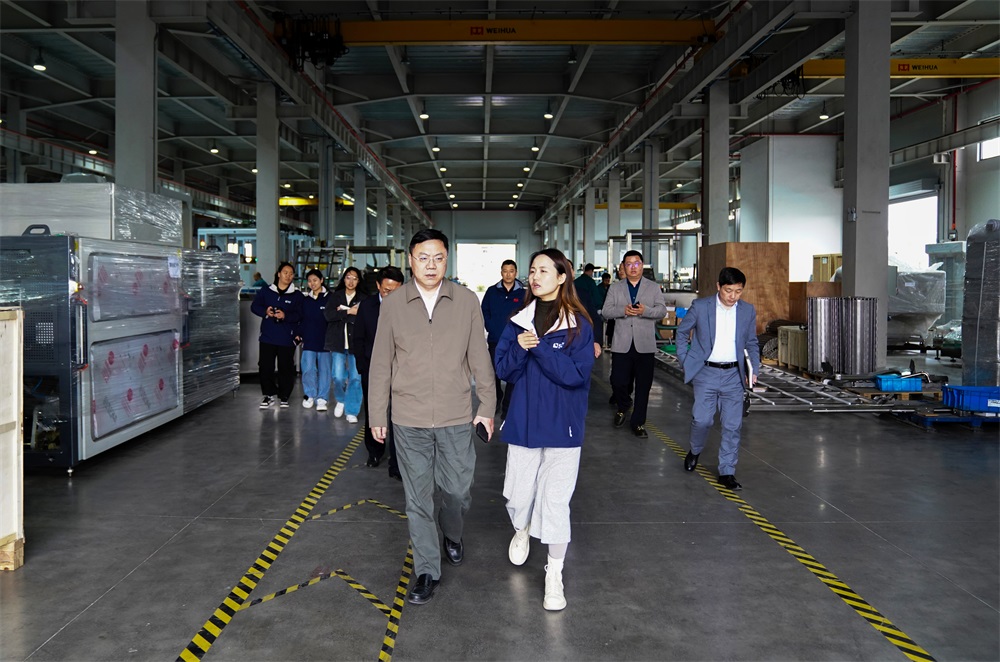 在尼為智能總經理李海艷的帶領下,上海市金山區委副書記、區長李澤龍一行參觀了工廠,了解了企業的生產經營、產品研發和銷售情況,同時聽取了公司面臨的困難和挑戰。
