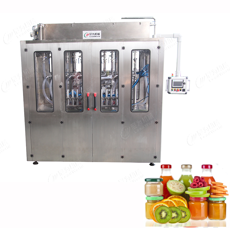 飲料灌裝機則是在瓶中壓力小于大氣壓力下進行的灌裝,適合各種粘度的液體,比如油類、糖漿、果酒等都可以適用這種灌裝。