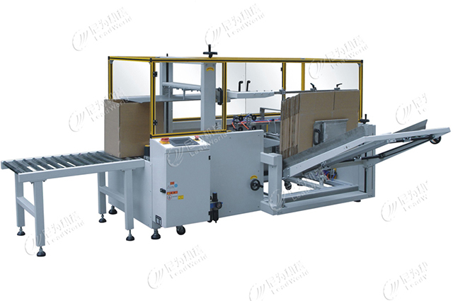 開箱機一般有立式和臥式兩種,立式開箱機工序分為自動開箱(站立式)、成型、下底折曲、底部膠帶粘貼,然后再放入物料封口,開箱速度大概是8-12箱/分;臥式開箱機則是自動開箱(側臥式)、成型,先將物料側推至箱子內部再前后封口,開箱速度大概是25-28箱/分。